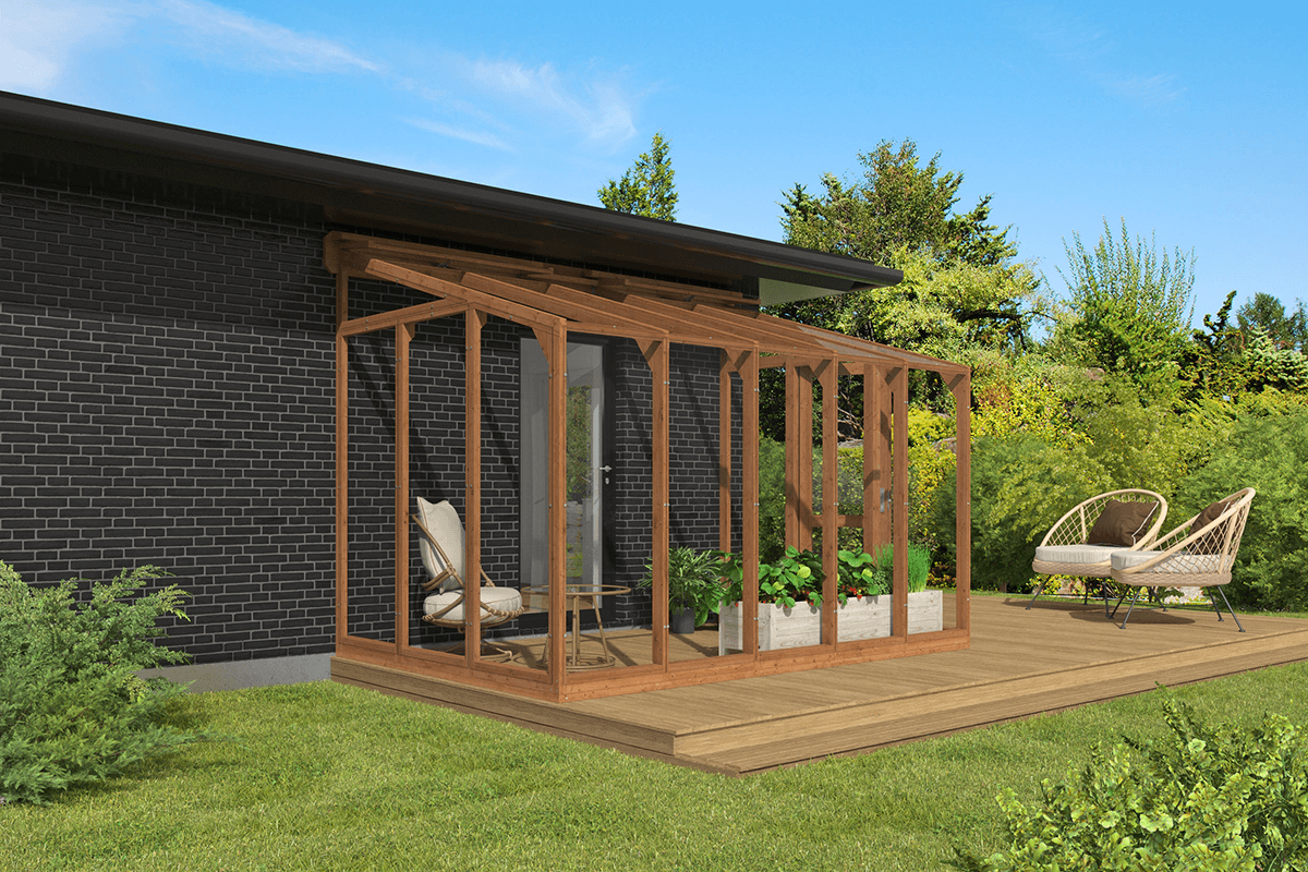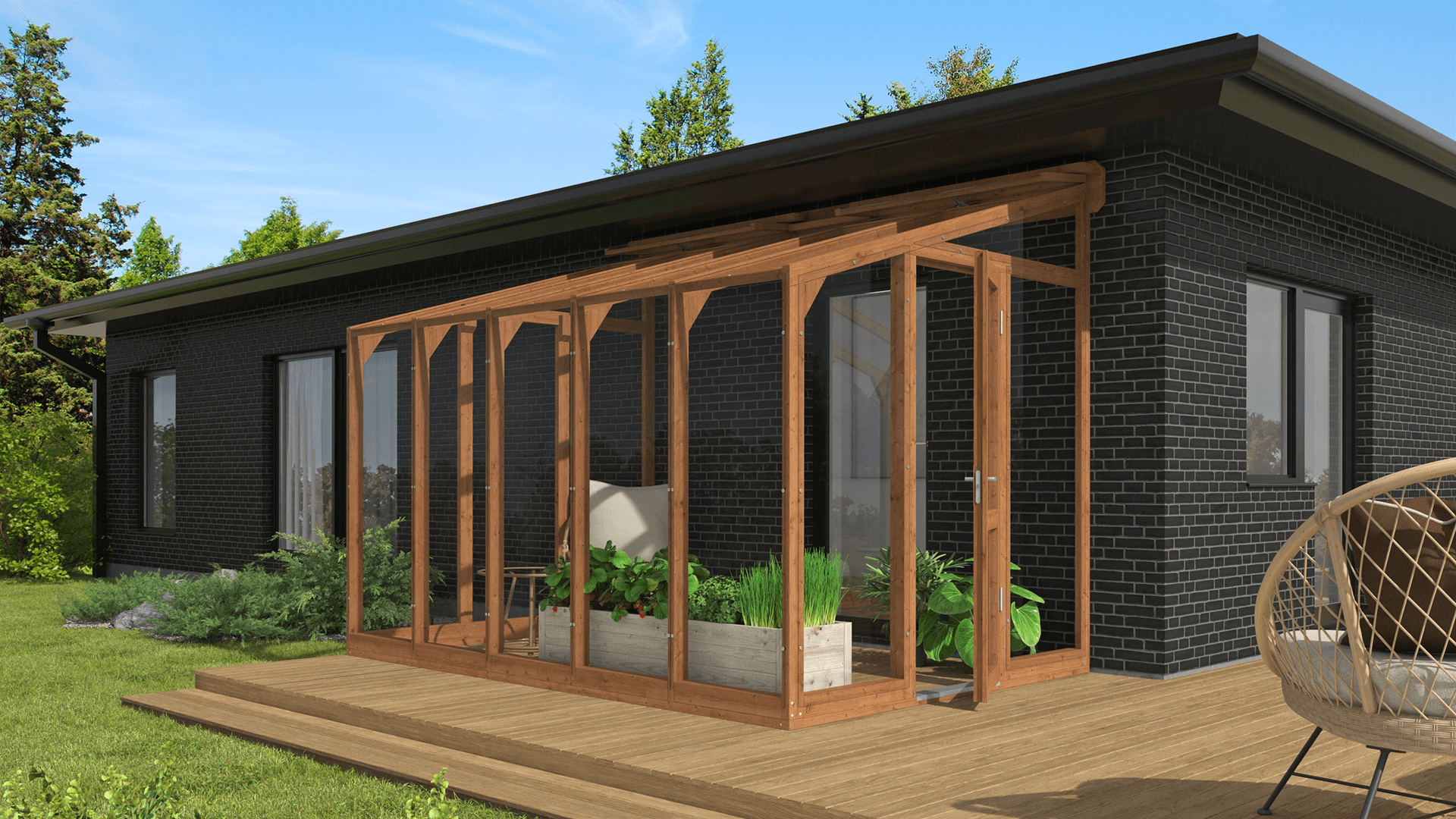 Šī koka sienas siltumnīca ir ideāls mūsdienīga dizaina un dabiskas elegances apvienojums, kas lieliski papildinās jebkuru ārtelpu. Ar savu unikālo stikla uz rāmja konstrukciju tā iemieso perfektu stila, funkcionalitātes un mūsdienu inženierijas saskaņu. Izmantojiet to svaigu, bioloģisku dārzeņu, aromātisku garšaugu un krāšņu ziedu audzēšanai vai pārvērtiet to par mājīgu atpūtas vietu, kur atjaunot saikni ar dabu un baudīt ārtelpu komfortu neatkarīgi no laikapstākļiem.