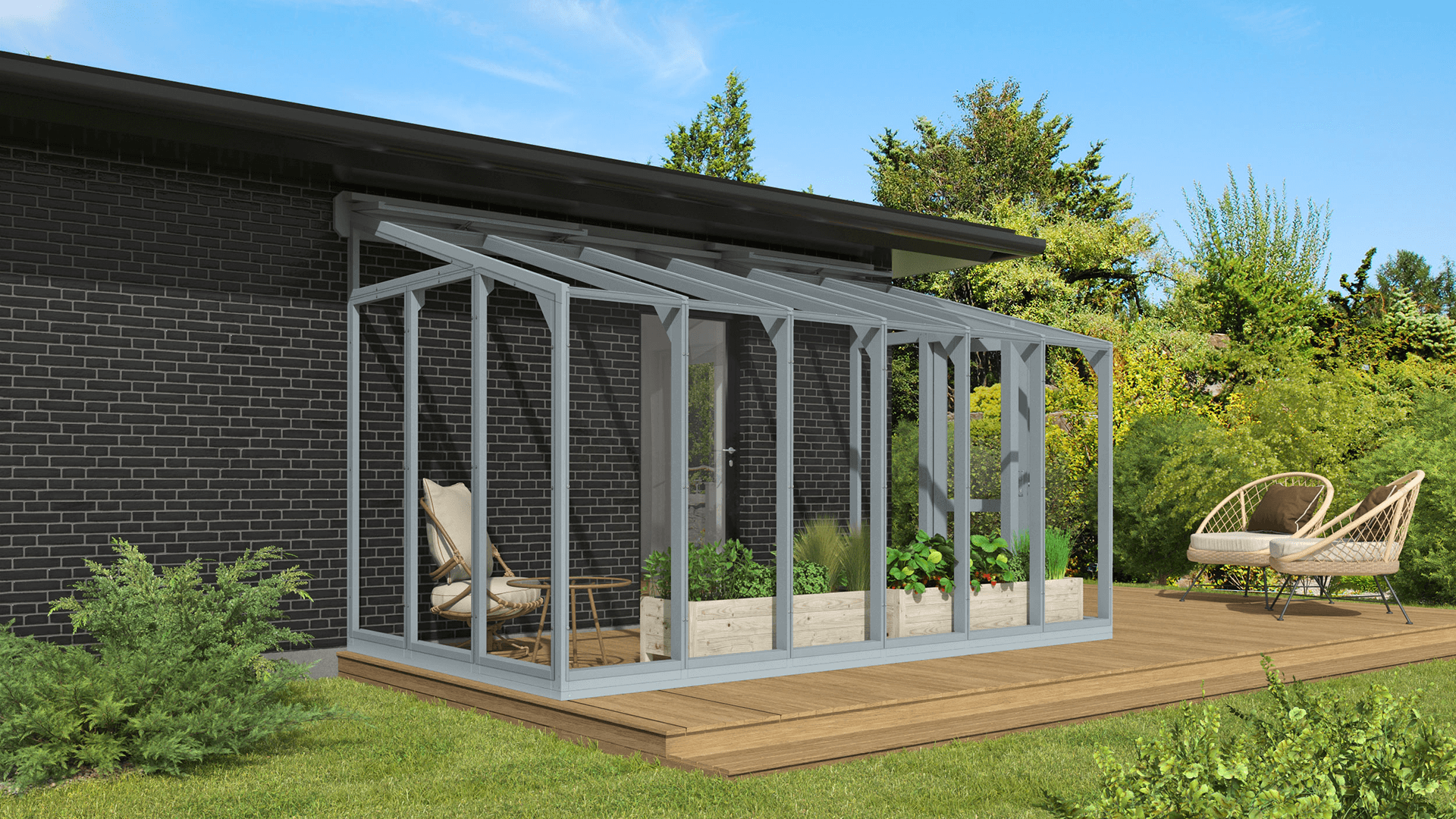 Pieejama plašā iespaidīgu krāsu klāstā, sienas siltumnīca LT 2 ļauj izvēlēties ideālo toni, kas papildinās jūsu unikālo stilu un ārtelpas dizainu. No maigiem, dabīgiem toņiem, kas harmoniski iekļaujas ainavā, līdz drosmīgām, uzmanību piesaistošām krāsām, kas rada izteiksmīgu akcentu — katra izvēle ir radīta, lai izceltu jūsu dārza skaistumu.