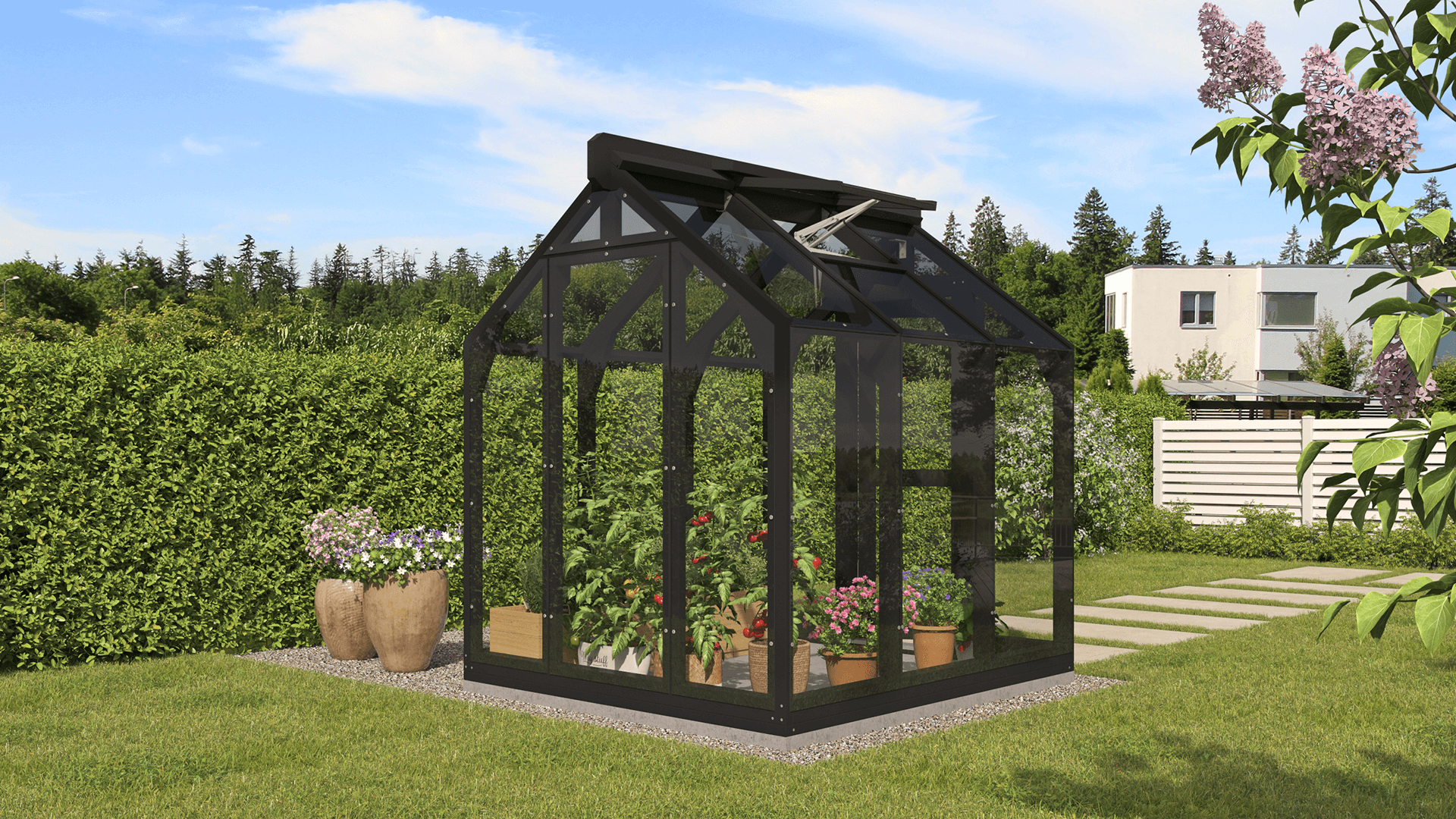 Siltumnīca ir aprīkota ar pilnībā regulējamām 3D eņģēm, durvju slēdzeni un Bayliss automātisko logu atvērēju.