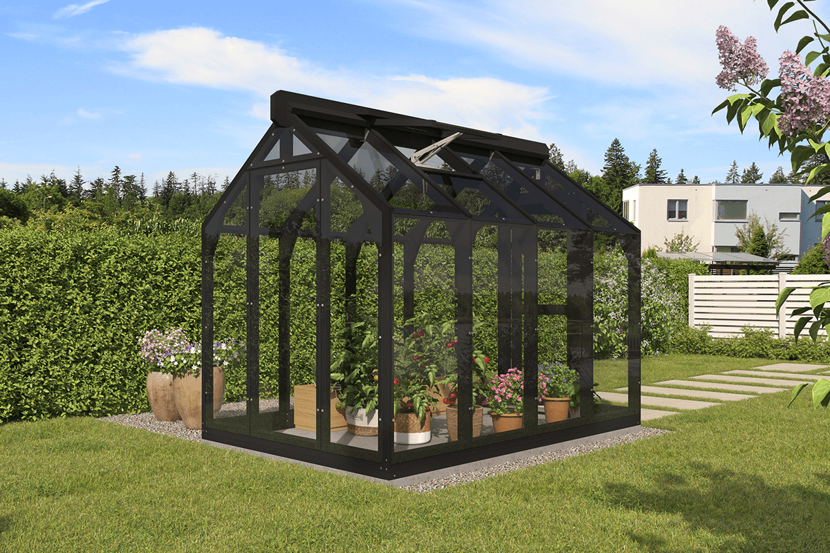 Siltumnīca ir aprīkota ar pilnībā regulējamām 3D eņģēm, durvju slēdzeni un Bayliss automātisko logu atvērēju.