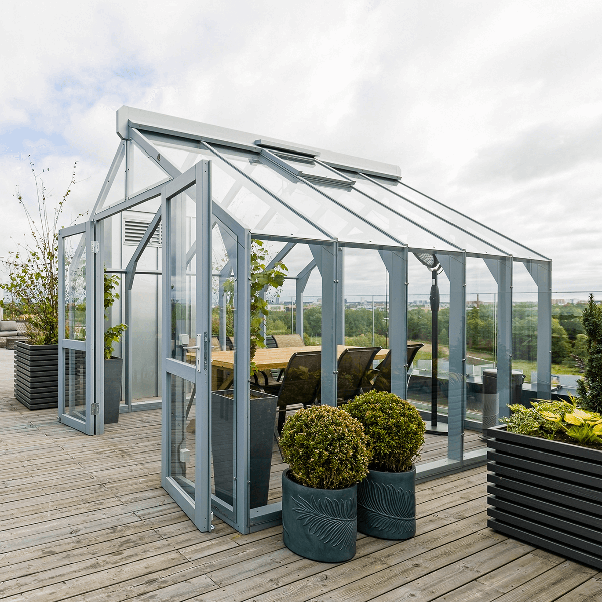 Pieejama plašā iespaidīgu krāsu klāstā, siltumnīca No 1 ļauj izvēlēties ideālo toni, kas papildinās jūsu unikālo stilu un ārtelpas dizainu. No maigiem, dabīgiem toņiem, kas harmoniski iekļaujas ainavā, līdz drosmīgām, uzmanību piesaistošām krāsām, kas rada izteiksmīgu akcentu — katra izvēle ir radīta, lai izceltu jūsu dārza skaistumu.