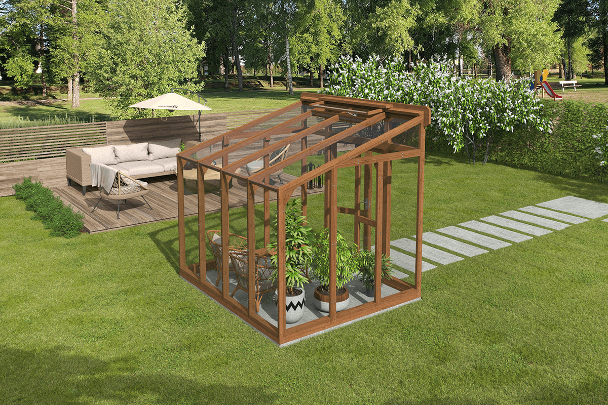 Šī moderna koka siltumnīca ir ideāls mūsdienīga dizaina un dabiskas elegances apvienojums, kas lieliski papildinās jebkuru ārtelpu. Ar savu unikālo stikla uz rāmja konstrukciju tā iemieso perfektu stila, funkcionalitātes un mūsdienu inženierijas saskaņu. Izmantojiet to svaigu, bioloģisku dārzeņu, aromātisku garšaugu un krāšņu ziedu audzēšanai vai pārvērtiet to par mājīgu atpūtas vietu, kur atjaunot saikni ar dabu un baudīt ārtelpu komfortu neatkarīgi no laikapstākļiem.