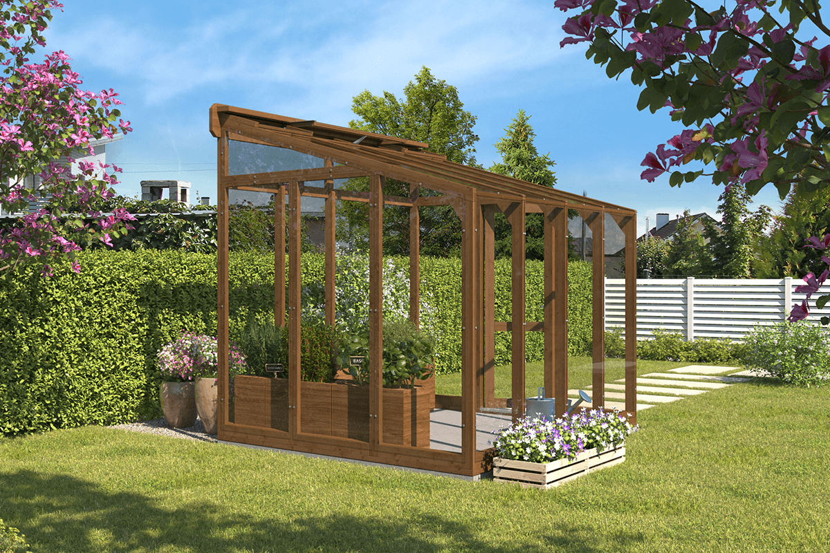 Šī moderna koka siltumnīca ir ideāls mūsdienīga dizaina un dabiskas elegances apvienojums, kas lieliski papildinās jebkuru ārtelpu. Ar savu unikālo stikla uz rāmja konstrukciju tā iemieso perfektu stila, funkcionalitātes un mūsdienu inženierijas saskaņu. Izmantojiet to svaigu, bioloģisku dārzeņu, aromātisku garšaugu un krāšņu ziedu audzēšanai vai pārvērtiet to par mājīgu atpūtas vietu, kur atjaunot saikni ar dabu un baudīt ārtelpu komfortu neatkarīgi no laikapstākļiem.