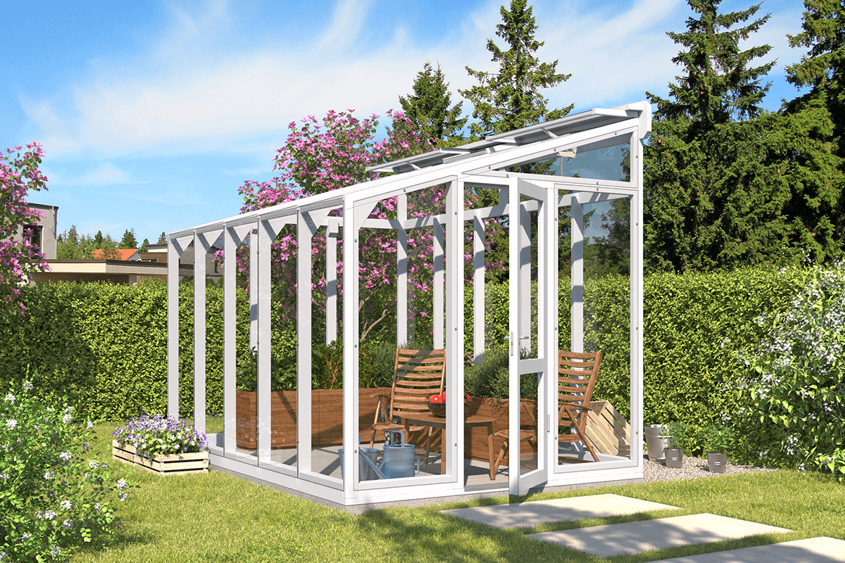 Siltumnīca ST 2 ir pilnībā iestiklota ar izturīgu 4 mm rūdīto drošības stiklu.