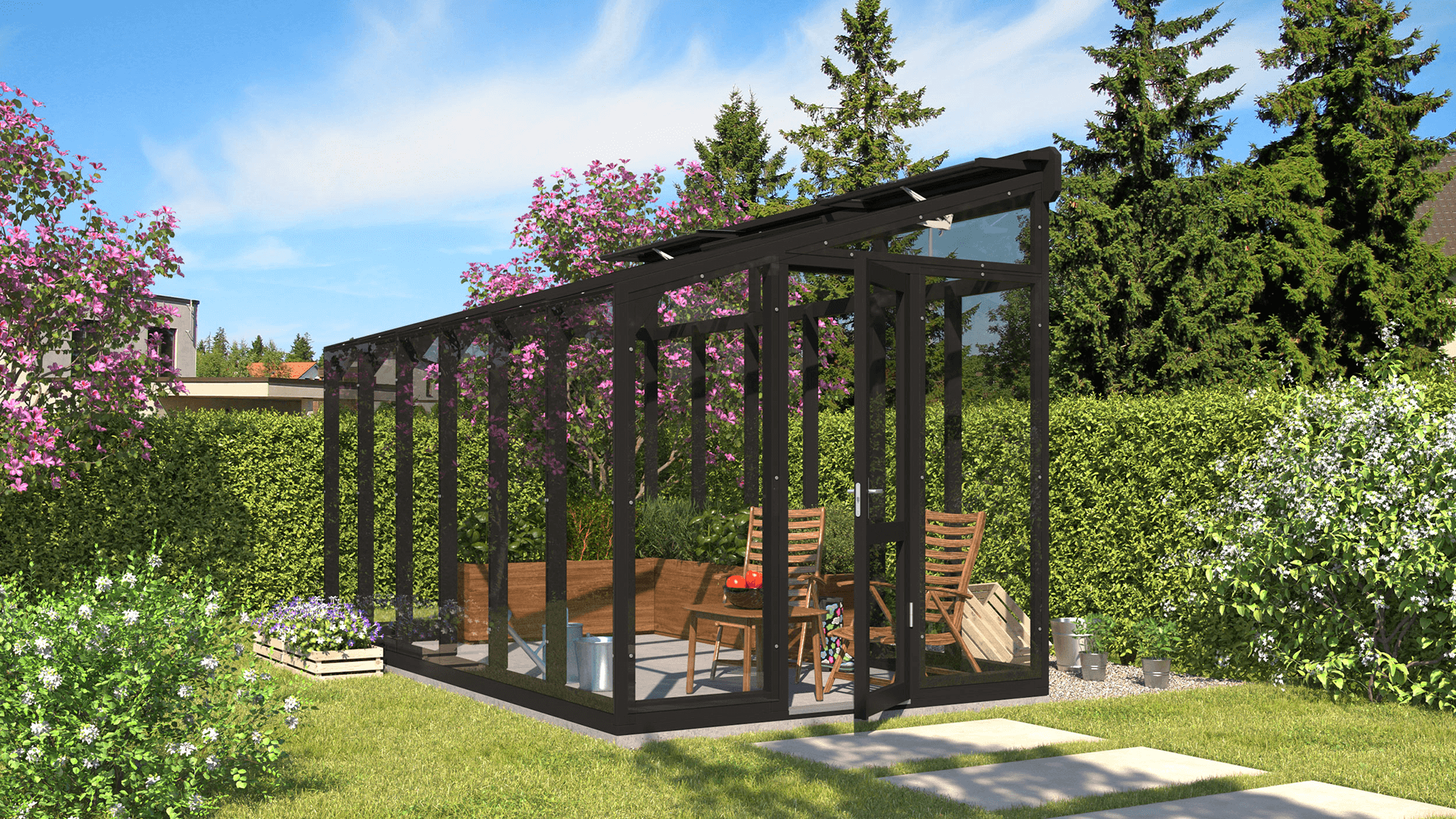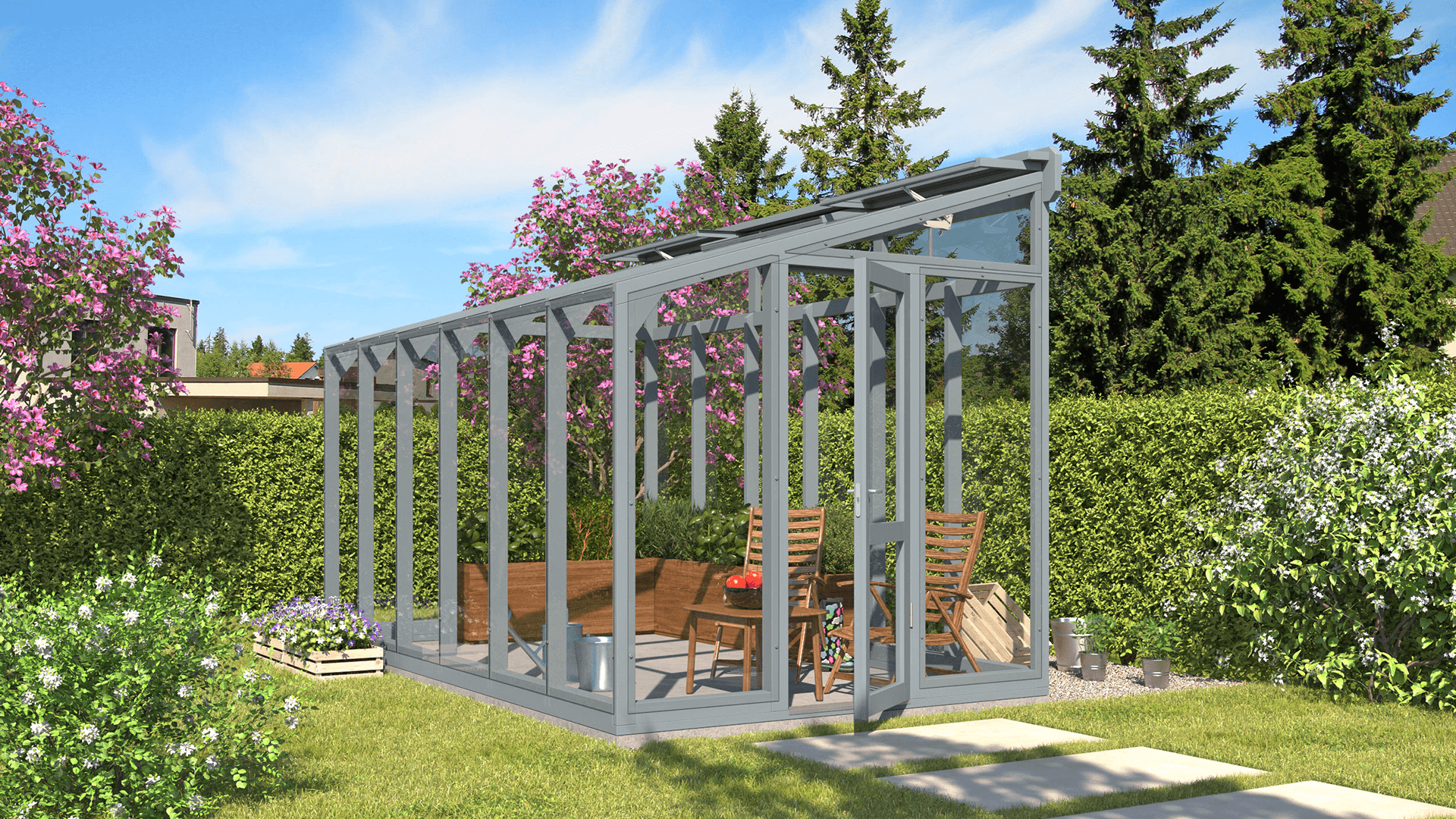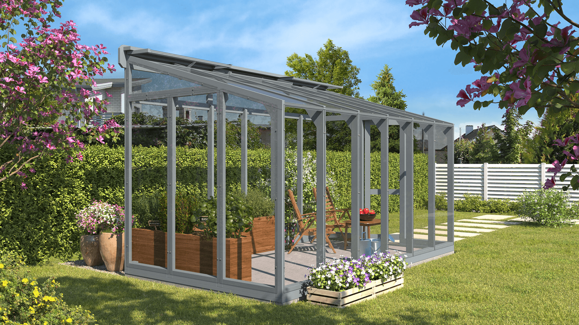 Pieejama plašā iespaidīgu krāsu klāstā, siltumnīca ST 3 ļauj izvēlēties ideālo toni, kas papildinās jūsu unikālo stilu un ārtelpas dizainu. No maigiem, dabīgiem toņiem, kas harmoniski iekļaujas ainavā, līdz drosmīgām, uzmanību piesaistošām krāsām, kas rada izteiksmīgu akcentu — katra izvēle ir radīta, lai izceltu jūsu dārza skaistumu.